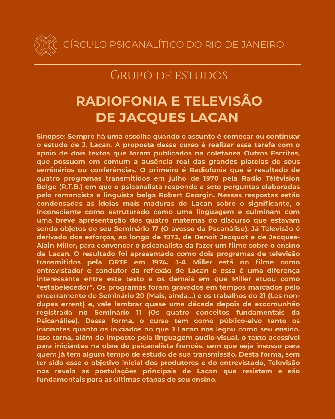 Grupo de Estudos: Radiofonia e Televisão de Jacques Lacan
