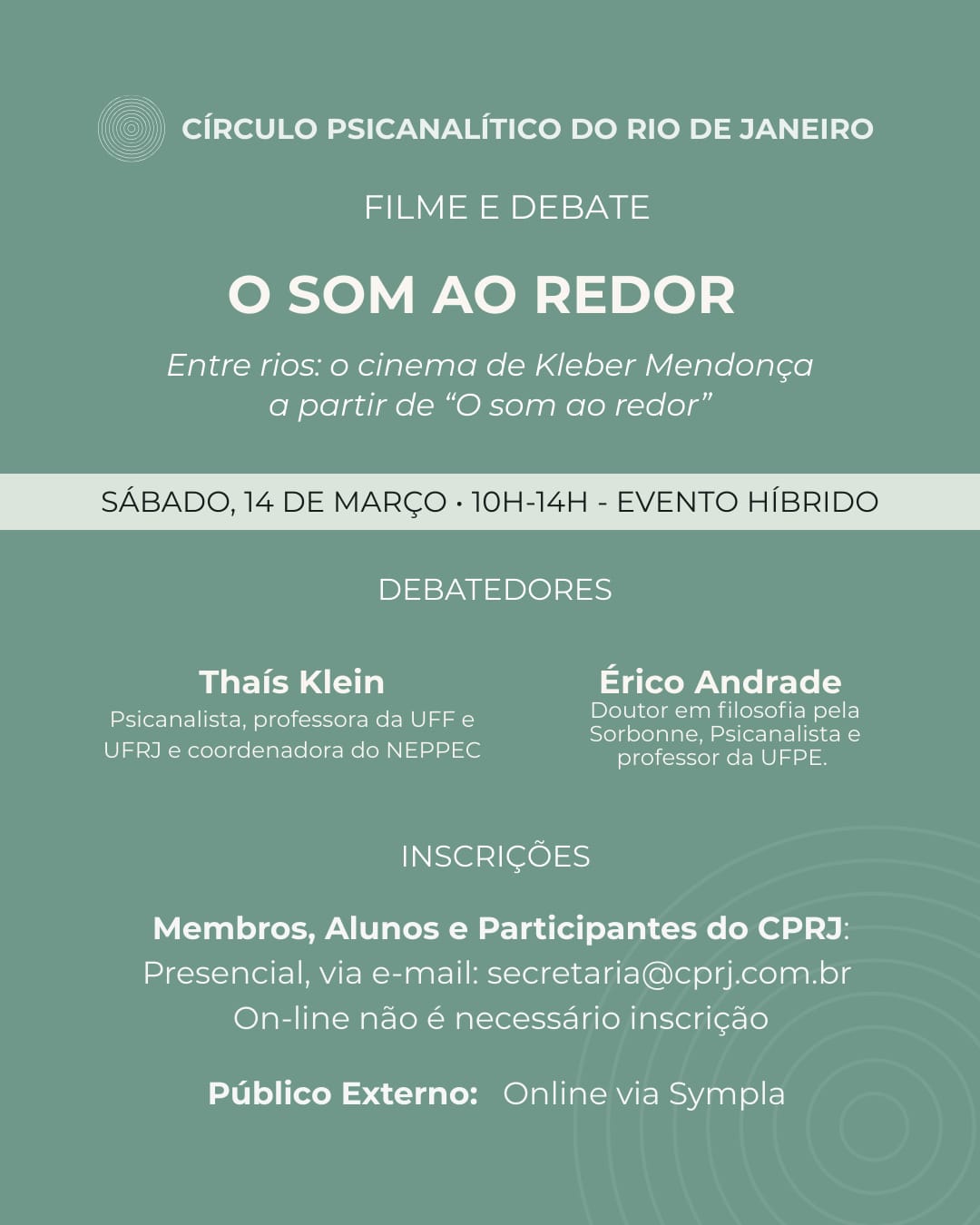 Público Externo: On-line via Sympla até 13/03: